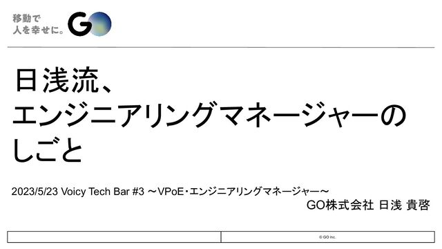 © GO Inc. 日浅流、 エンジニアリングマネージャーの しごと 2023/5/23 Voicy Tech Bar