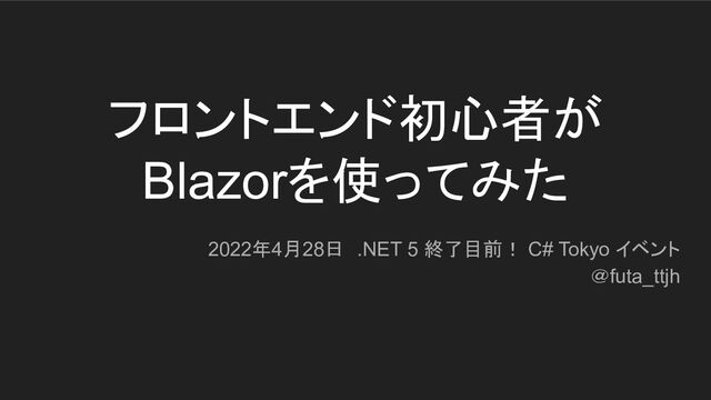 フロントエンド初心者が Blazorを使ってみた 2022年4月28日 .NET 5 終了目前! C# Tokyo イベント @futa_ttjh