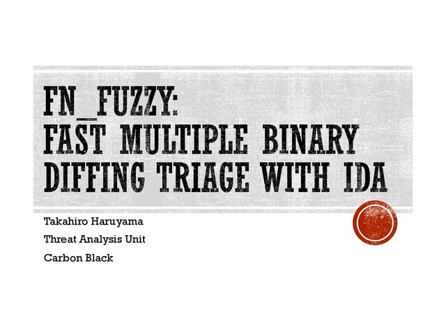 https://conference.hitb.org/hitbsecconf2019ams/materials/D1T2%20-%20fn_fuzzy%20-%20Fast%20Multiple%20Binary%20Diffing%20Triage%20-%20Takahiro%20Haruyama.pdf