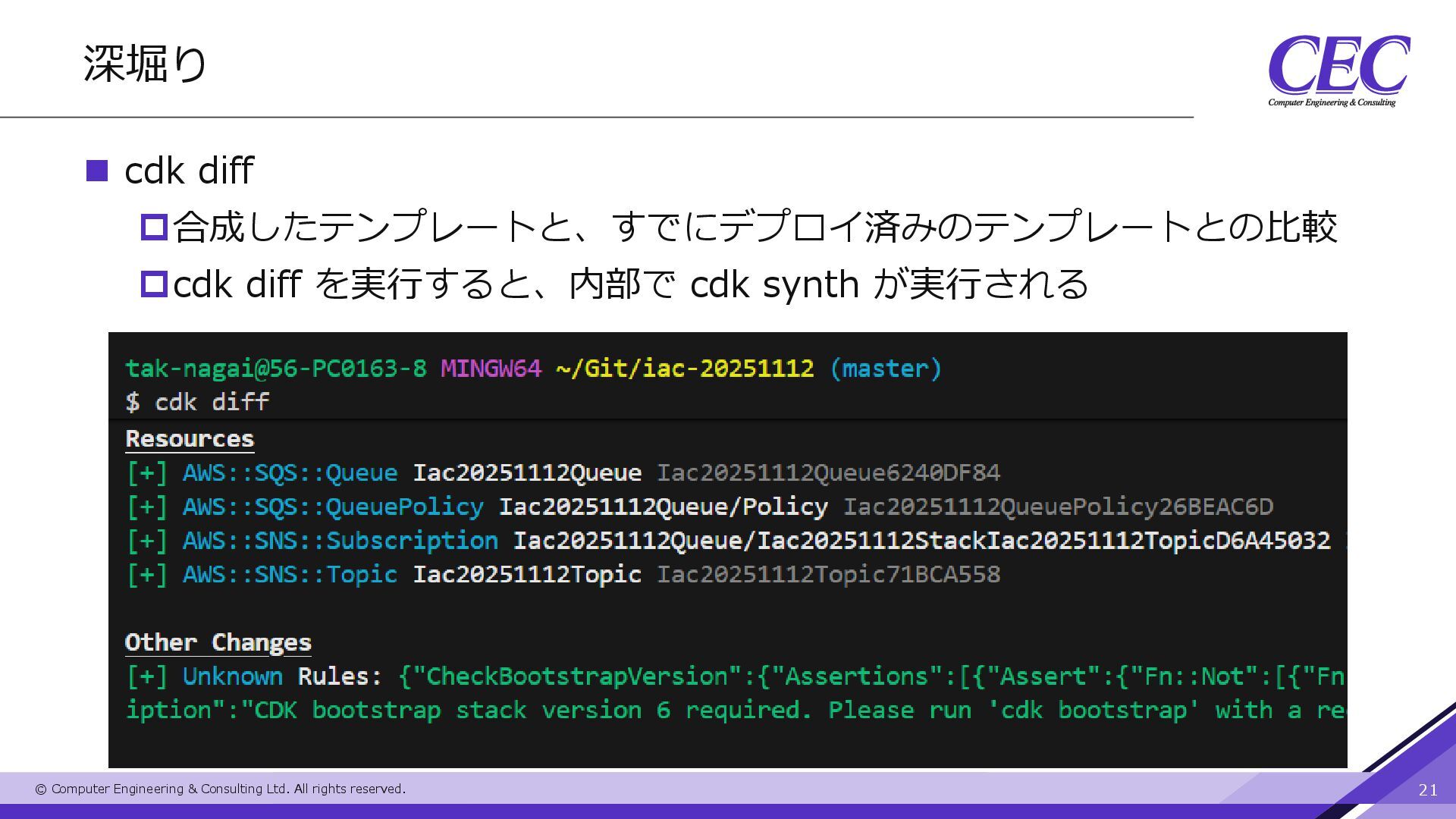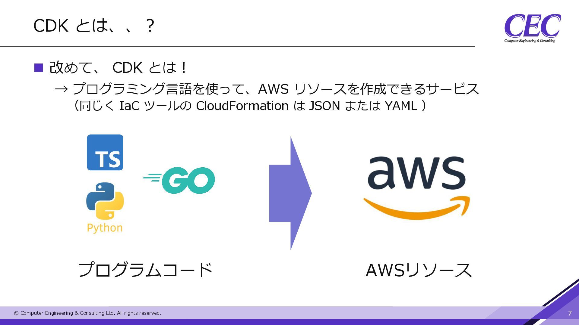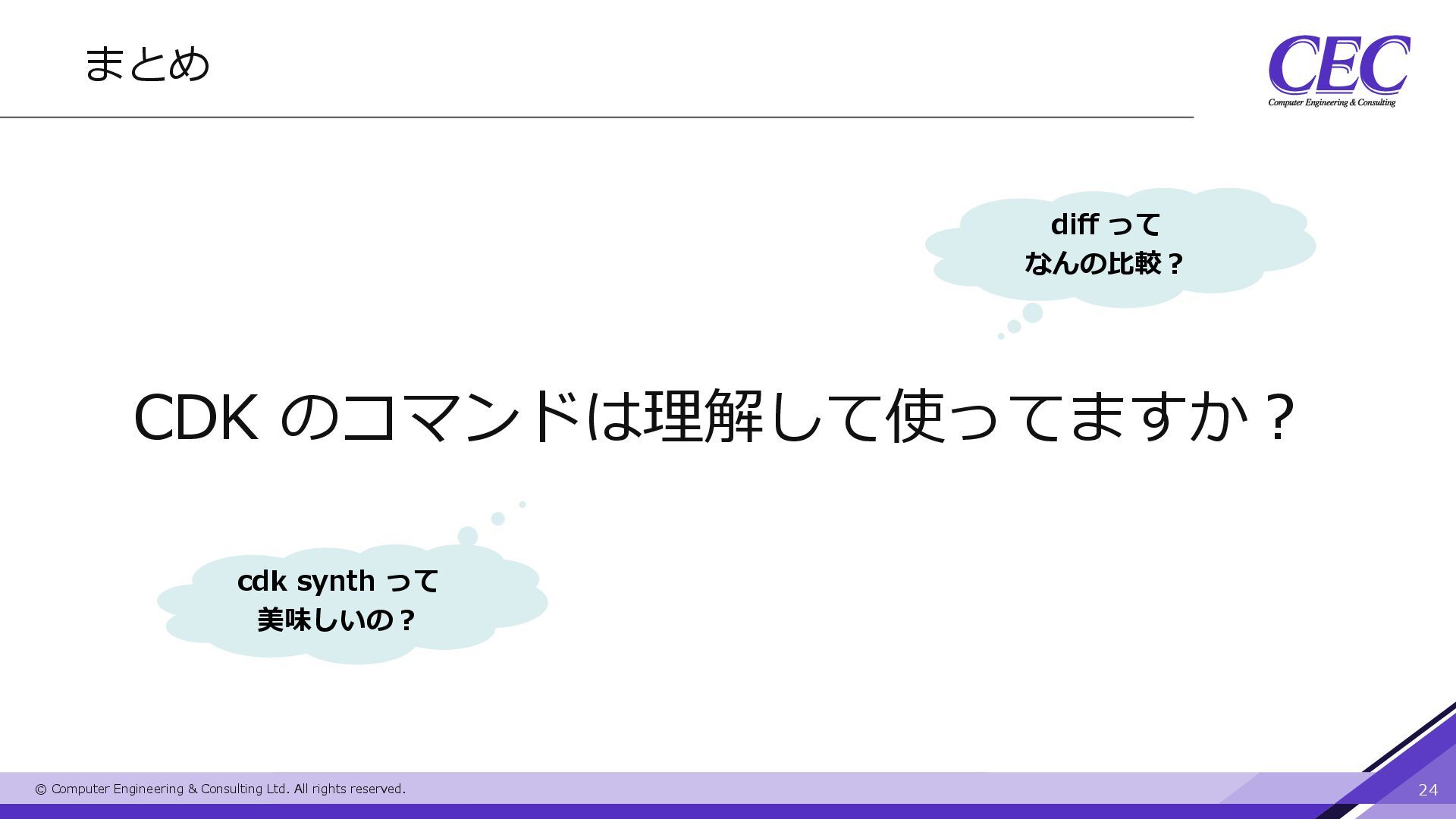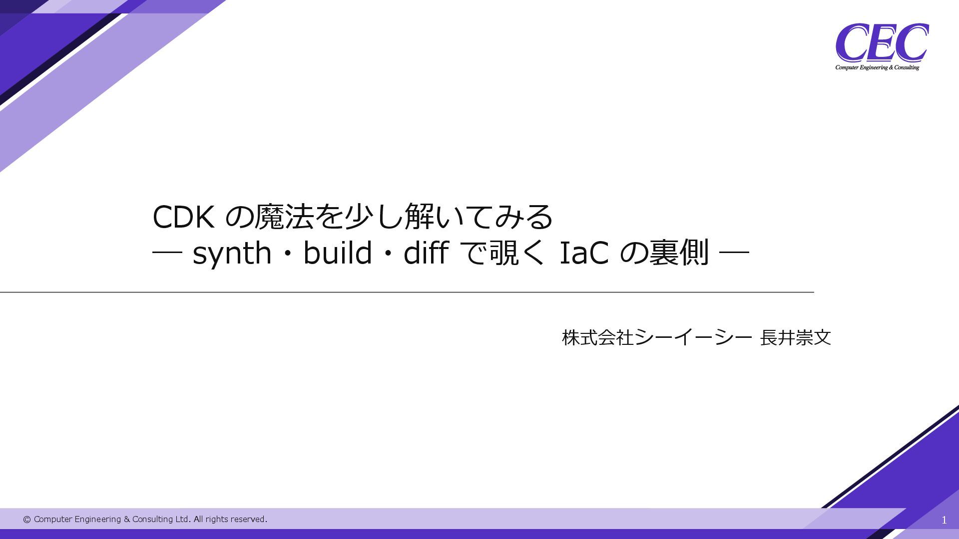 AWS CDKは、コードによってインフラを構築できる強力なツールであり、その手軽さから「魔法のよう」と形容されることも多い。 本発表では、その"魔法"の裏側に焦点を当て、synth・build・diff の3つのコマンドを軸に、CDKがどのようにCloudFormationテンプレートを生成し、IaCを実現しているのかに迫る。
