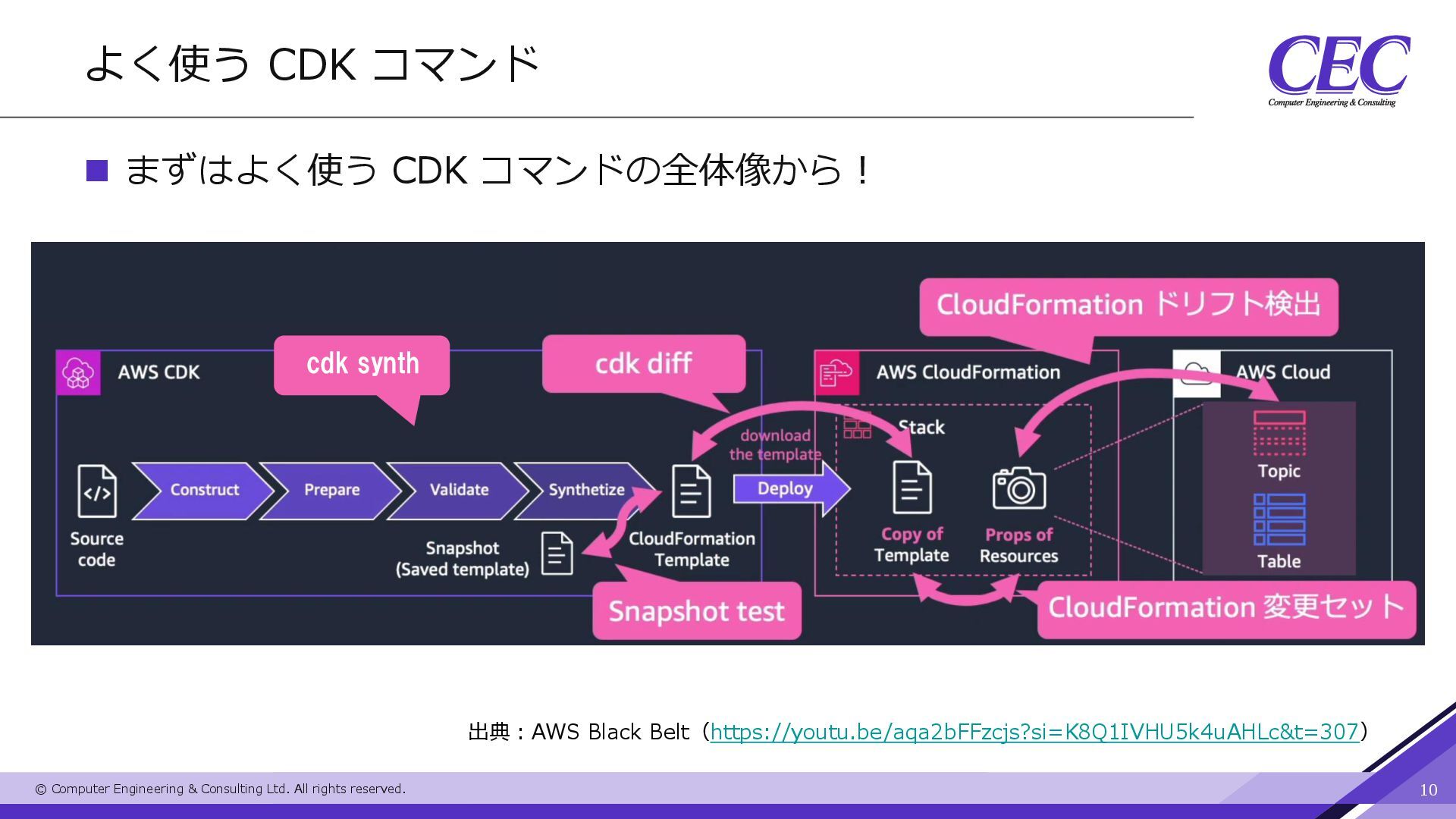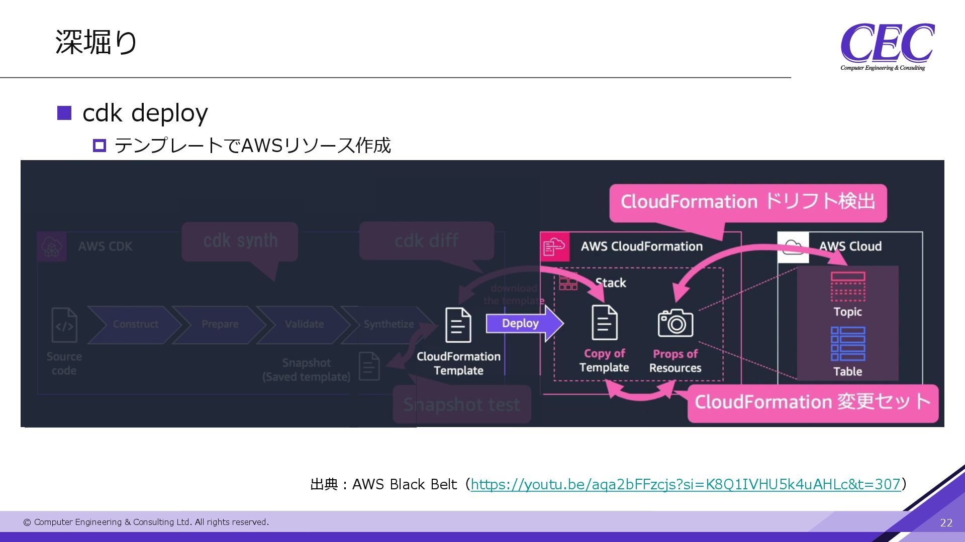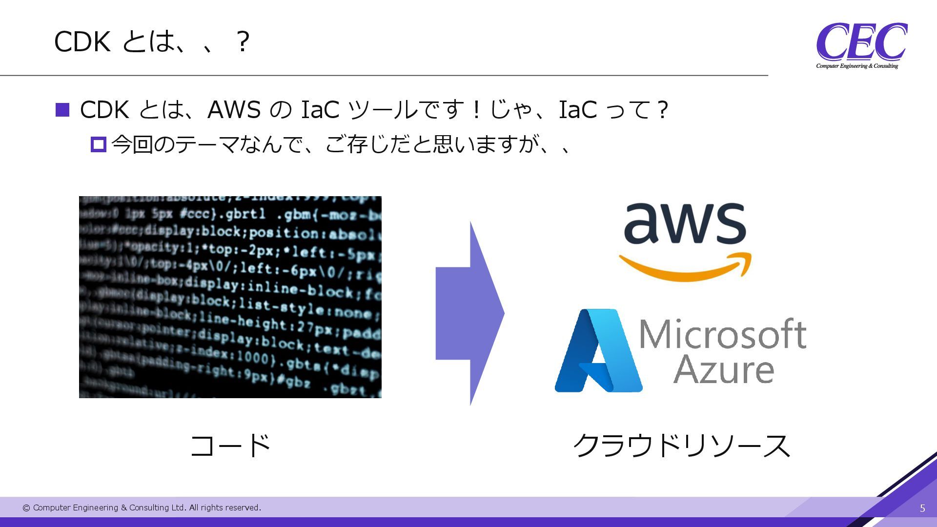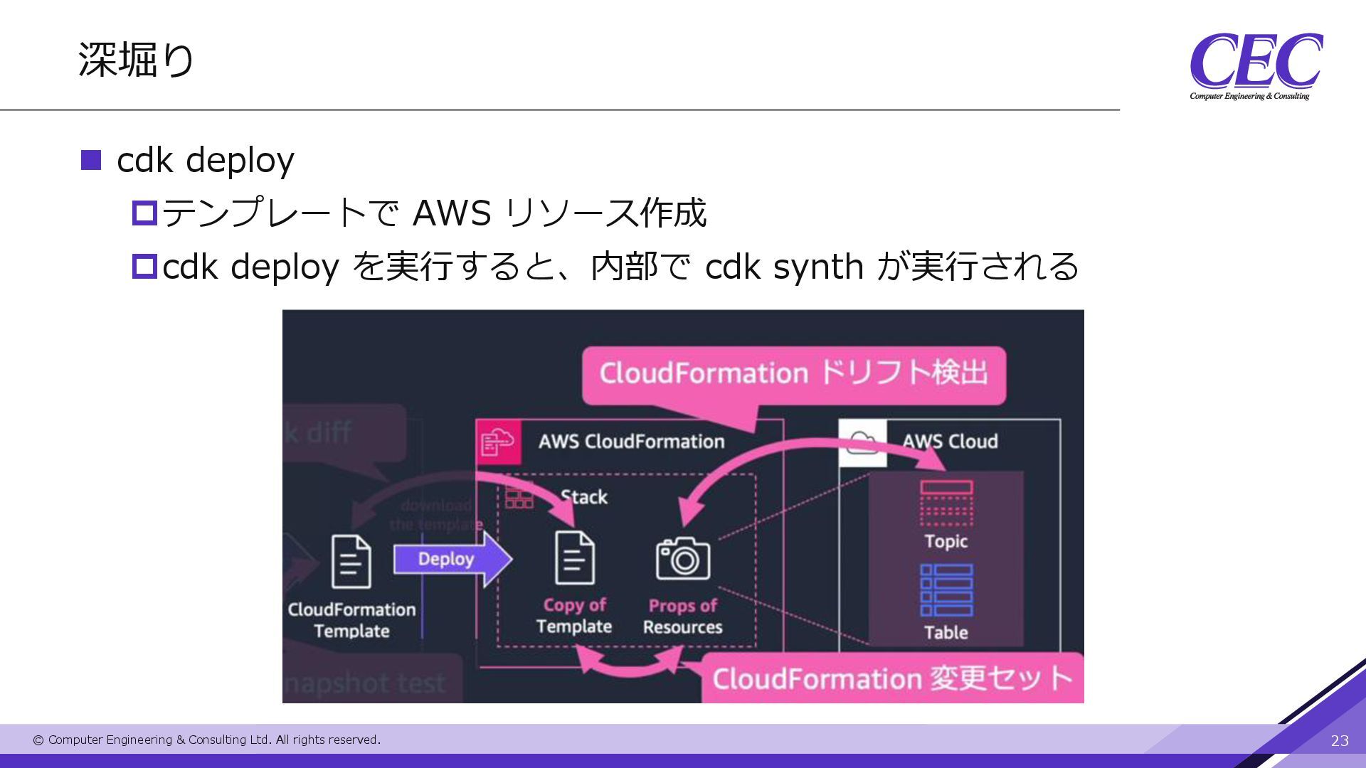 AWS CDKは、コードによってインフラを構築できる強力なツールであり、その手軽さから「魔法のよう」と形容されることも多い。 本発表では、その"魔法"の裏側に焦点を当て、synth・build・diff の3つのコマンドを軸に、CDKがどのようにCloudFormationテンプレートを生成し、IaCを実現しているのかに迫る。