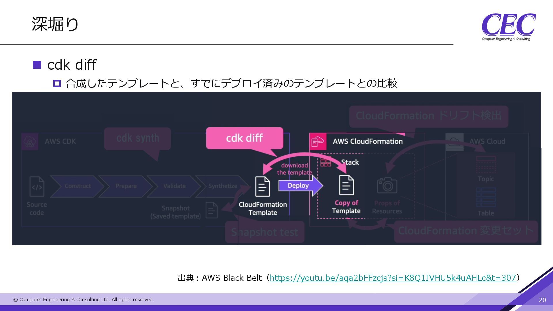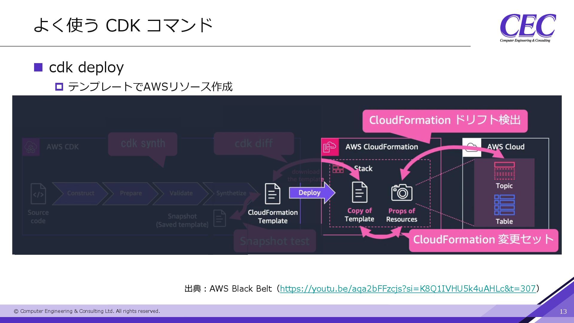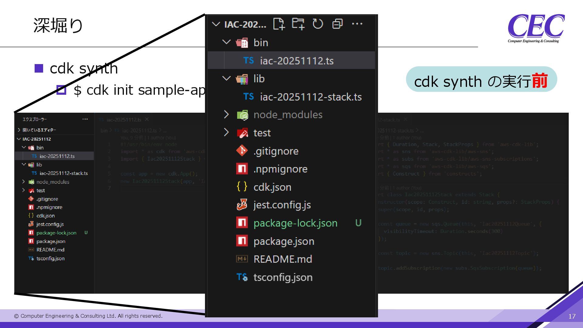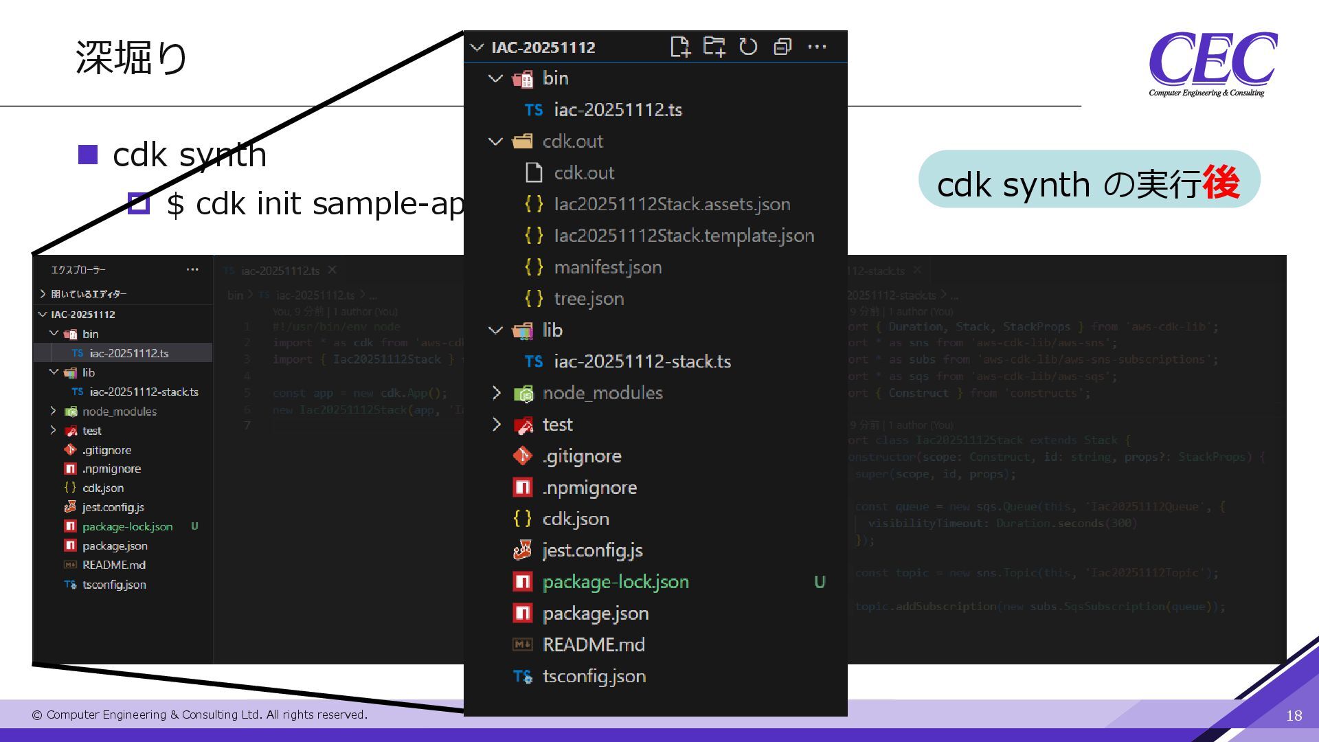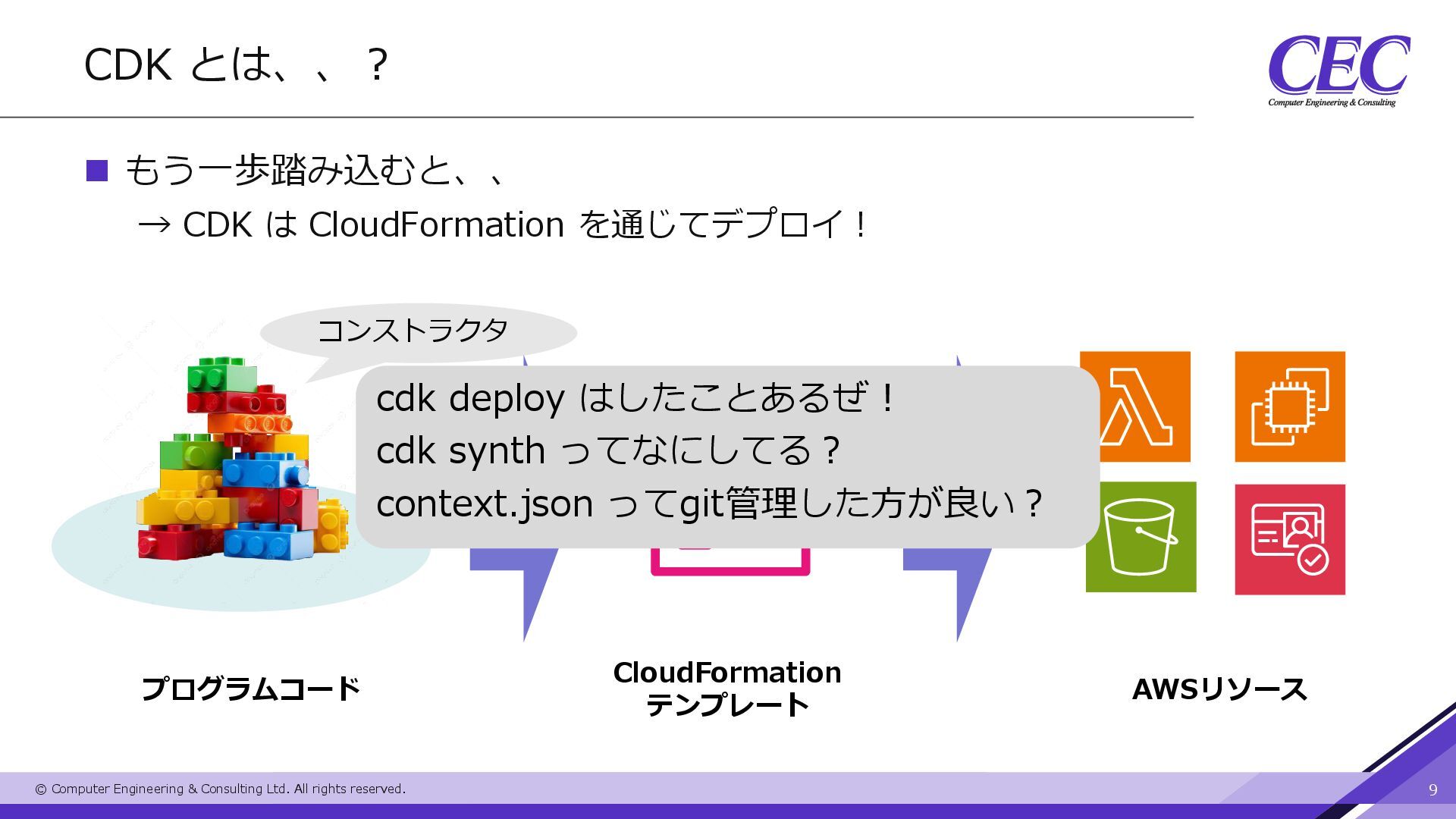 AWS CDKは、コードによってインフラを構築できる強力なツールであり、その手軽さから「魔法のよう」と形容されることも多い。 本発表では、その"魔法"の裏側に焦点を当て、synth・build・diff の3つのコマンドを軸に、CDKがどのようにCloudFormationテンプレートを生成し、IaCを実現しているのかに迫る。