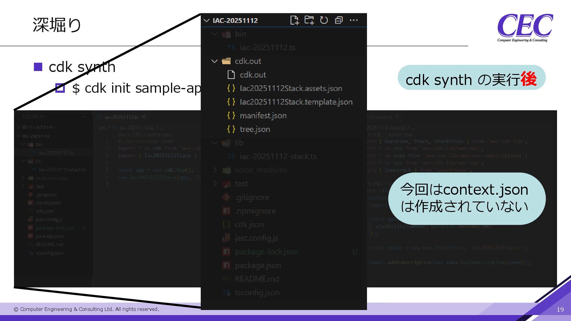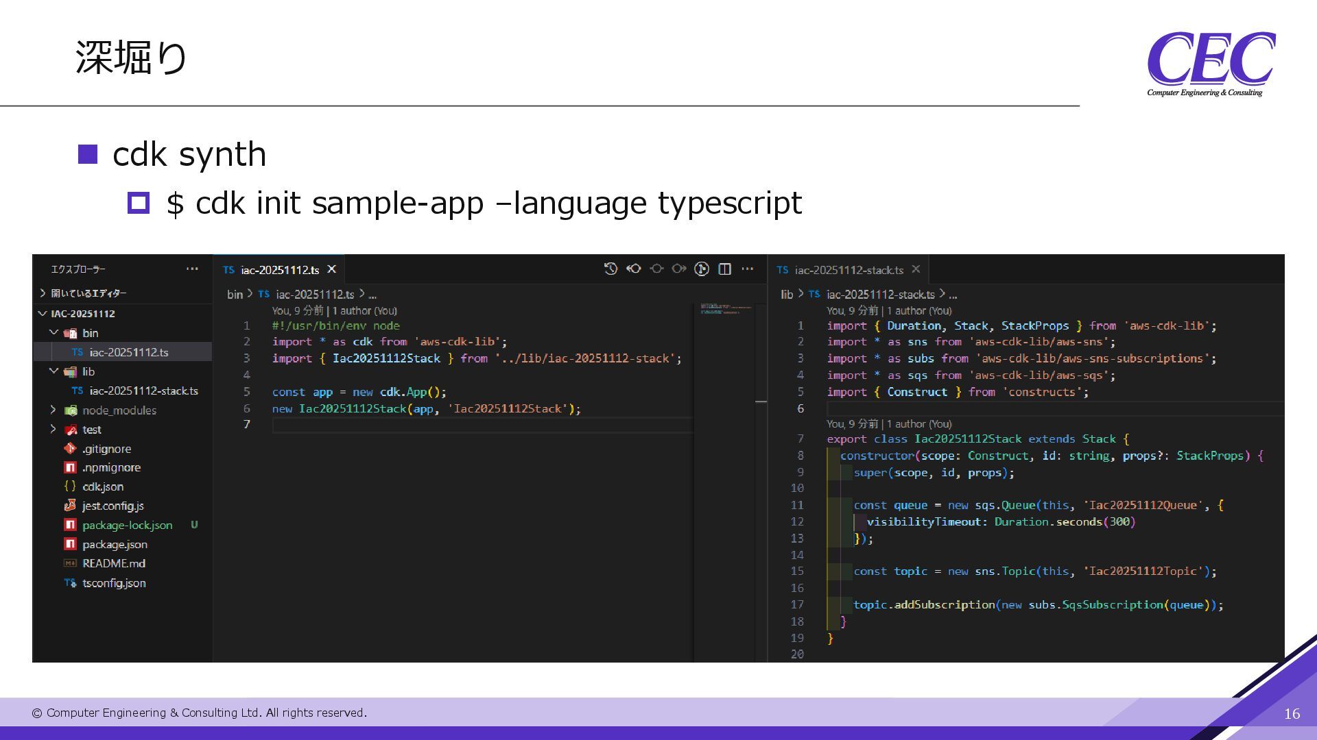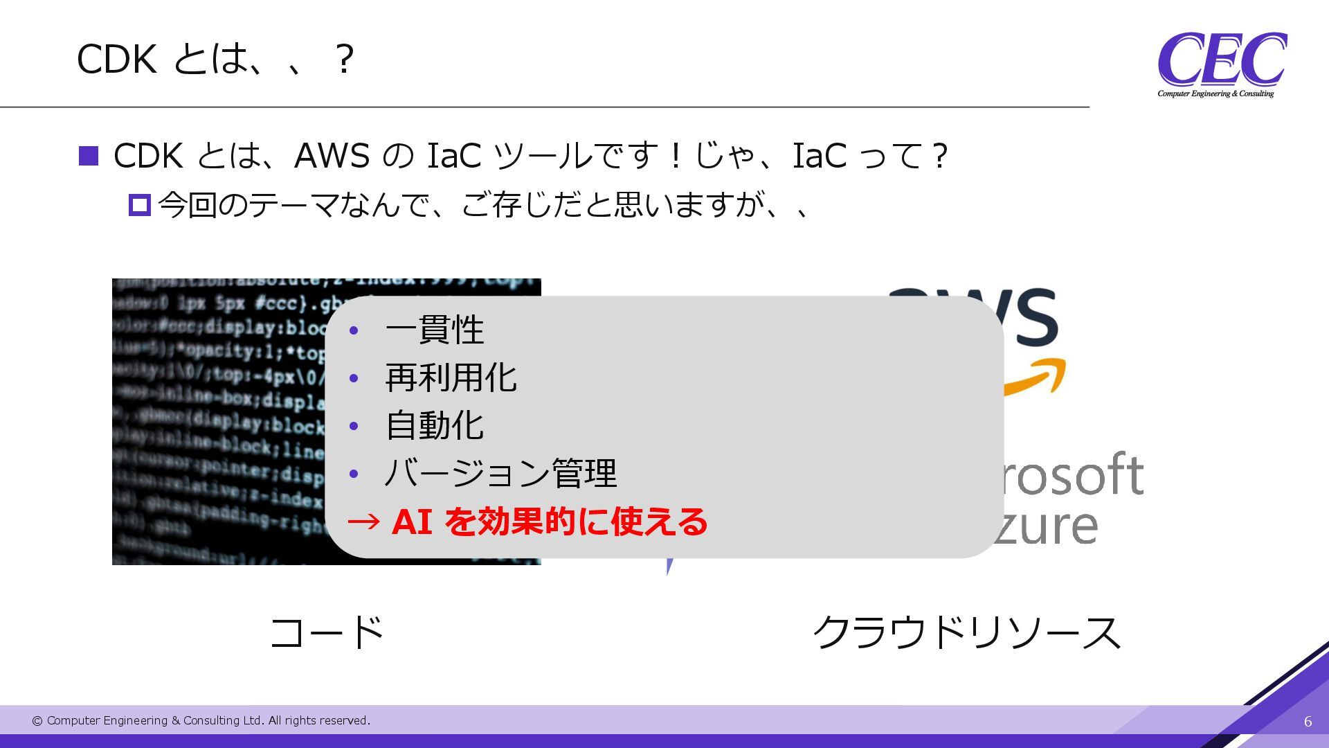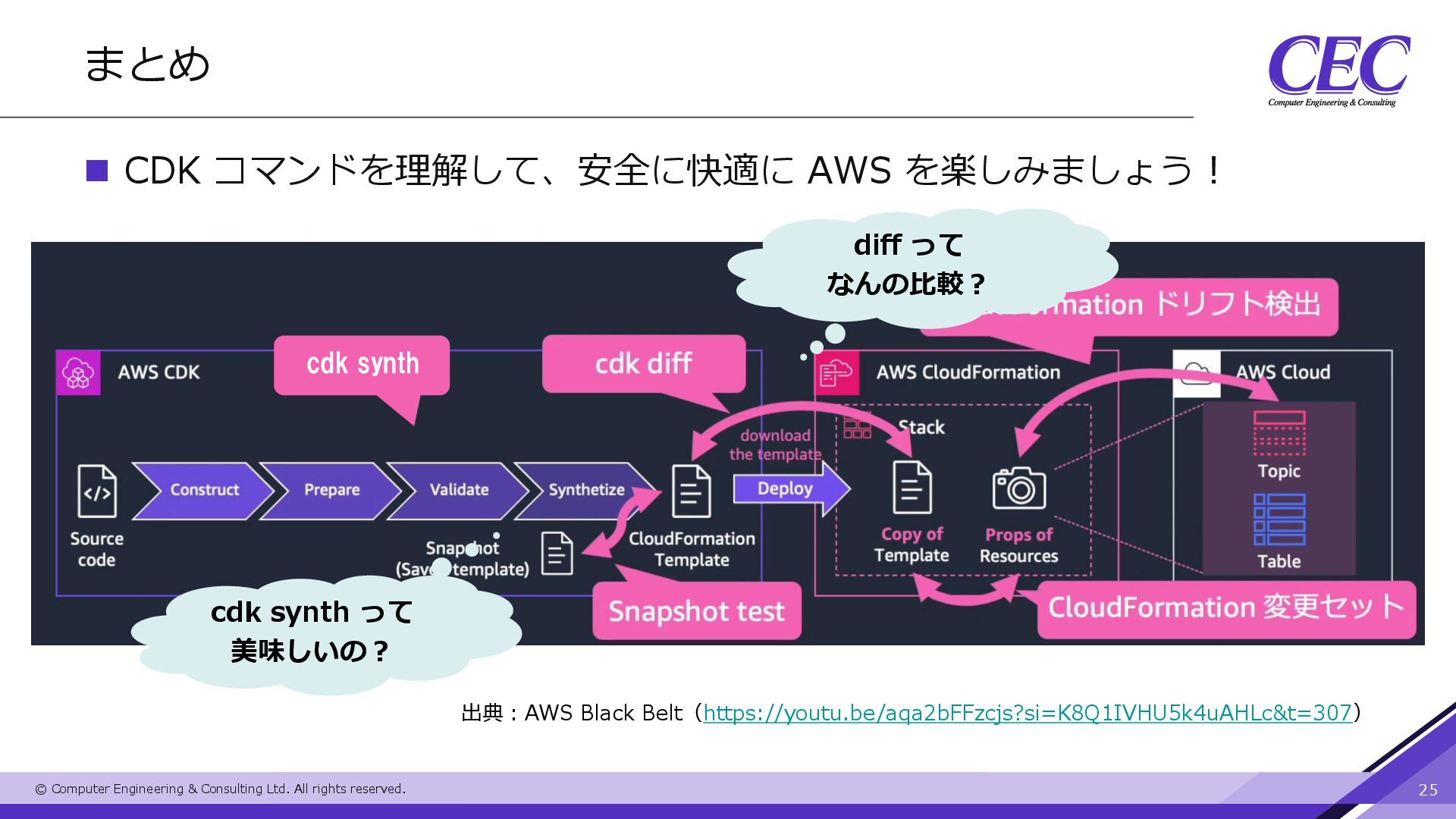 AWS CDKは、コードによってインフラを構築できる強力なツールであり、その手軽さから「魔法のよう」と形容されることも多い。 本発表では、その"魔法"の裏側に焦点を当て、synth・build・diff の3つのコマンドを軸に、CDKがどのようにCloudFormationテンプレートを生成し、IaCを実現しているのかに迫る。