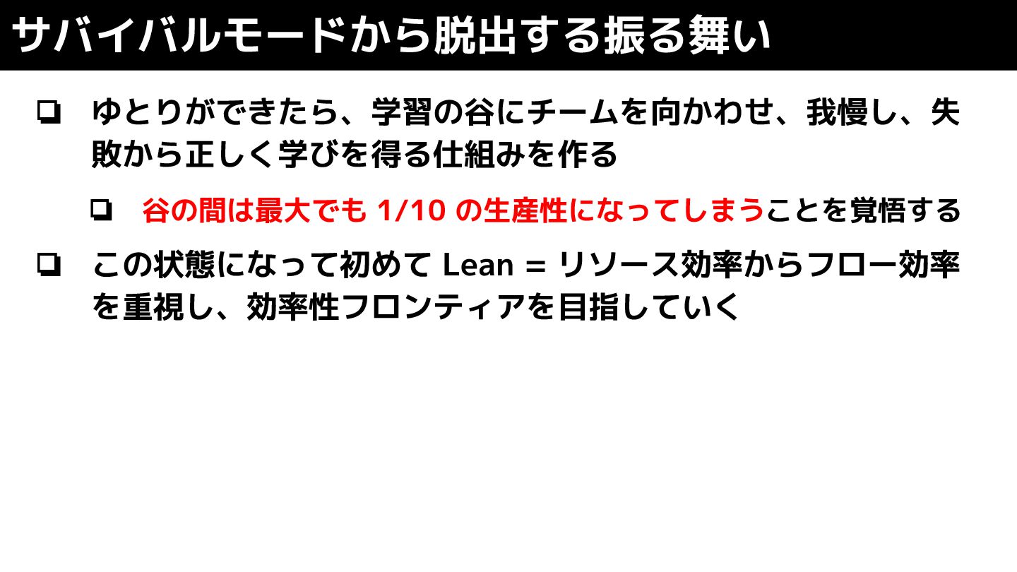 = リソース効率からフロー効率 を重視し、効率性フロンティアを目指していく サバイバルモードから脱出する振る舞い