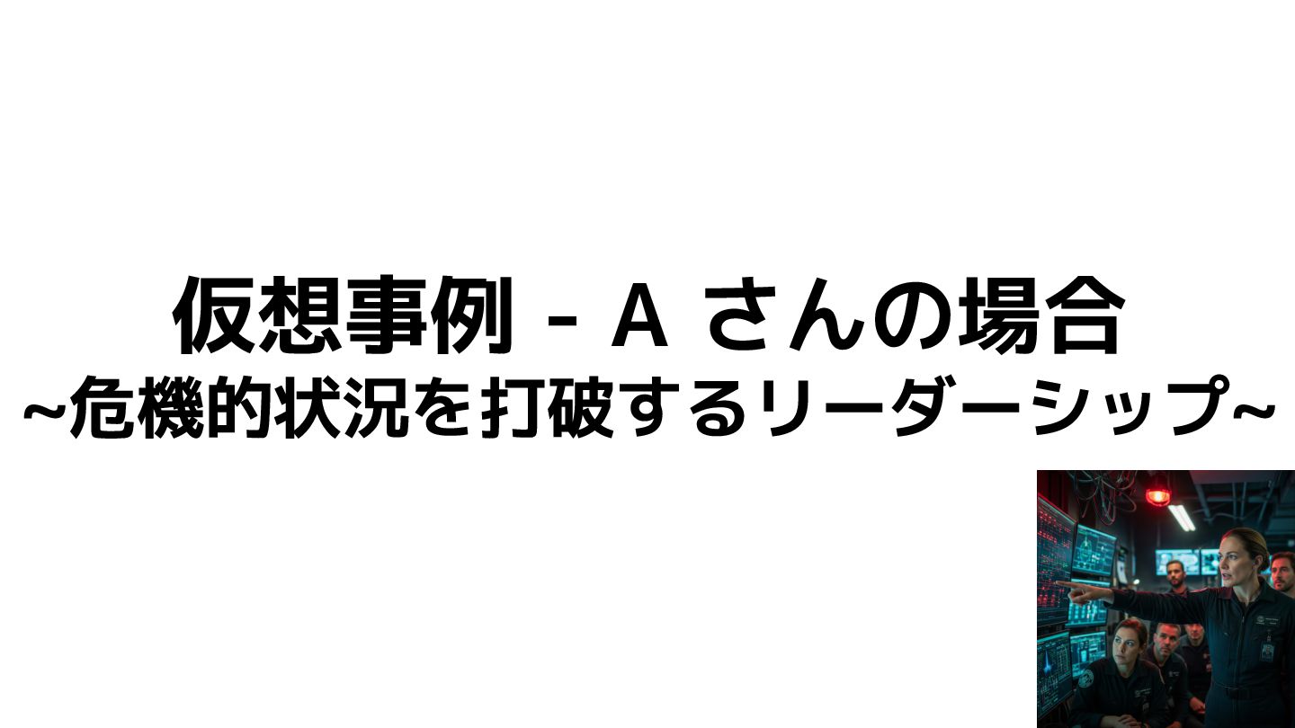 ❏ 炎上していたプロジェクトも落ち着き、継続して機能改善をし ていくことに ❏ 高いリーダーシップを発揮していた A さんがそのままチーム リーダーに就任 ❏ 最初は