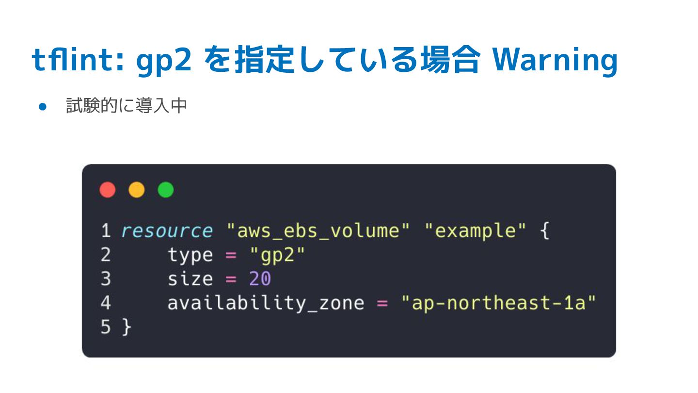 tflint: gp2 を指定している場合 Warning • 試験的に導入中