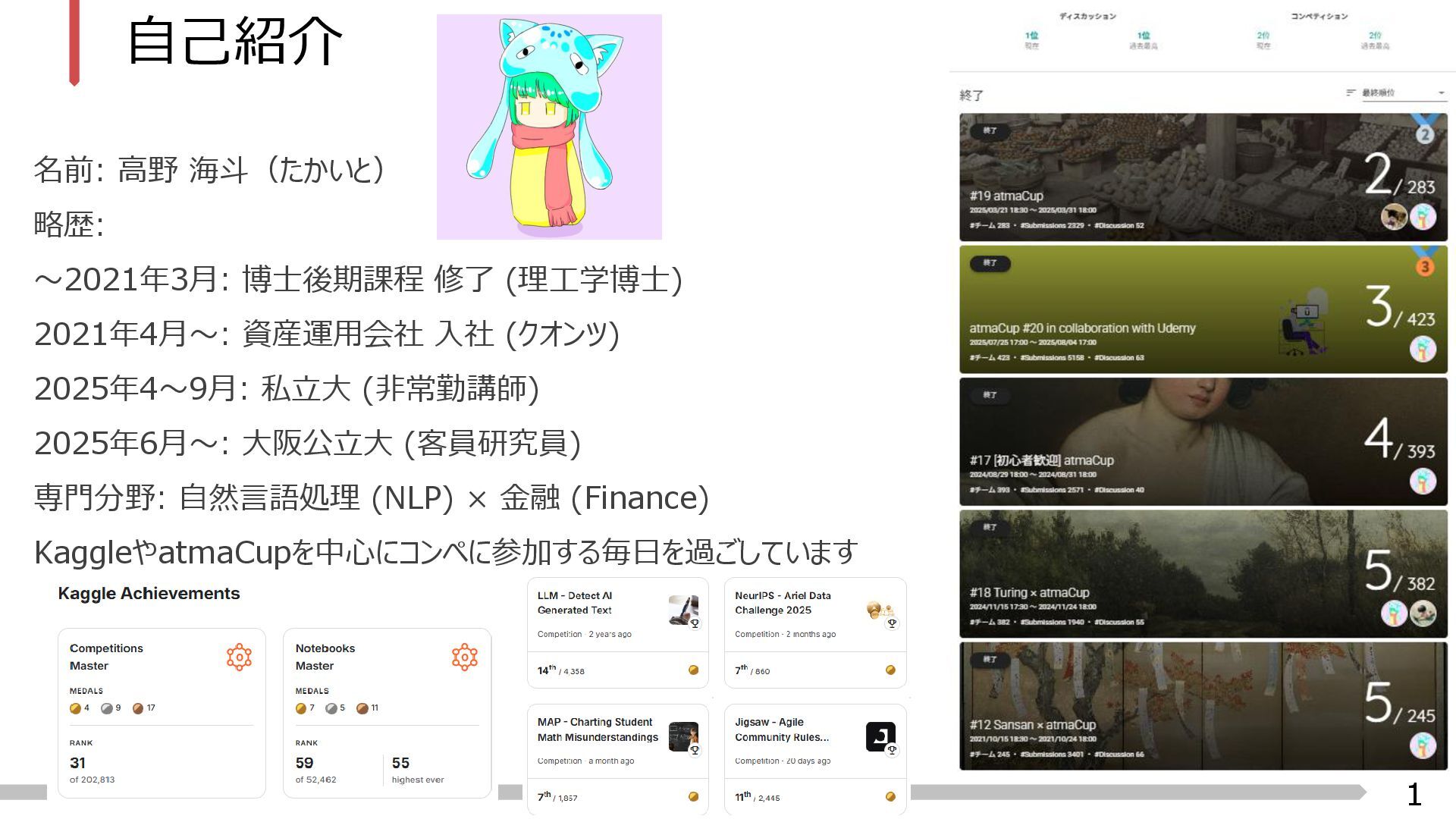 関西Kaggler会 交流会 in Osaka 2025#3の登壇資料となります.