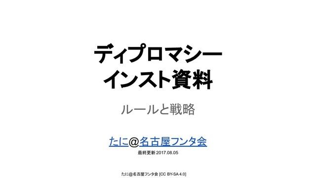 たに@名古屋フンタ会 [CC BY-SA 4.0] ディプロマシー インスト資料 ルールと戦略 たに@名古屋フンタ会 最終更新 2017.08.05