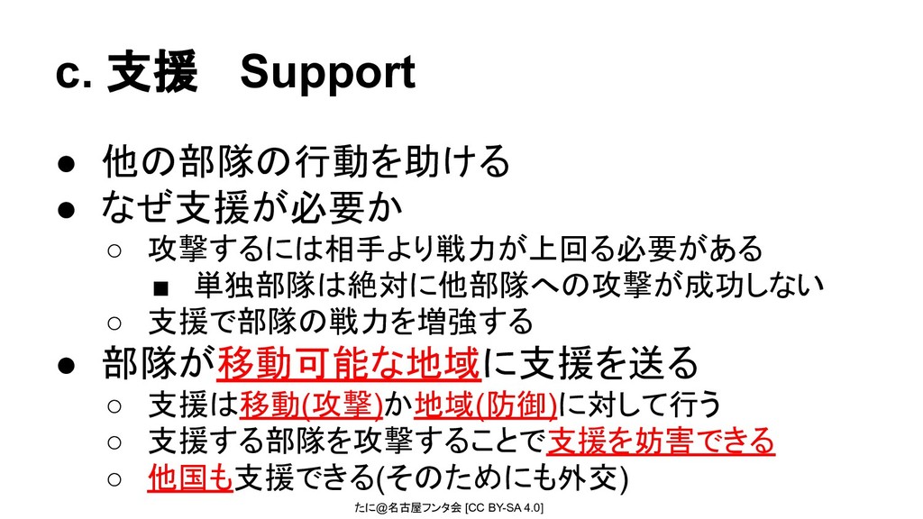 たに@名古屋フンタ会 [CC BY-SA 4.0] c. 支援 Support • 他の部隊の行動を助ける •