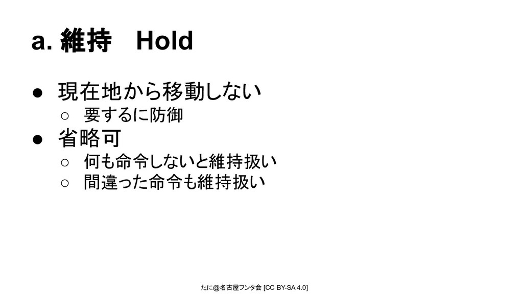 たに@名古屋フンタ会 [CC BY-SA 4.0] a. 維持 Hold • 現在地から移動しない ◦