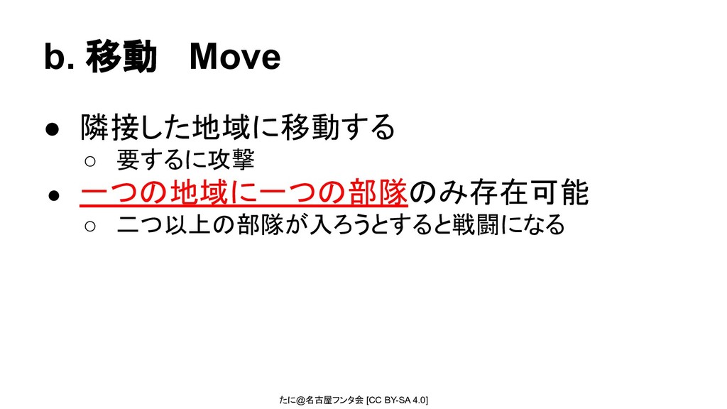 たに@名古屋フンタ会 [CC BY-SA 4.0] b. 移動 Move • 隣接した地域に移動する ◦