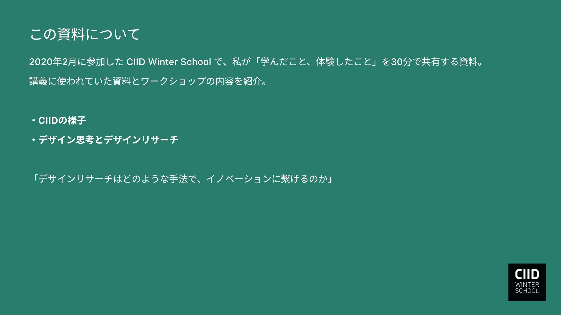 CIID Winter School 2020, Tokyo: Report by Takaki Yasuma, UXリサーチ