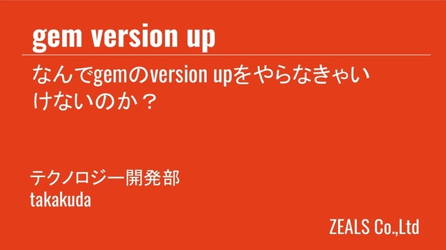 ZEALS Co.,Ltd なんでgemのversion upをやらなきゃい けないのか? gem version up テクノロジー開発部 takakuda