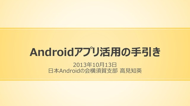 Androidアプリ活用の手引き 2013年10月13日 日本Androidの会横須賀支部 高見知英