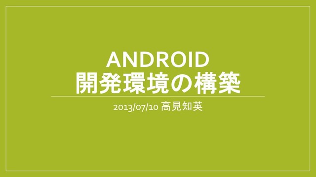 ANDROID 開発環境の構築 2013/07/10 高見知英