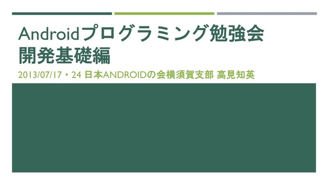 Androidプログラミング勉強会 開発基礎編 2013/07/17・24 日本ANDROIDの会横須賀支部 高見知英