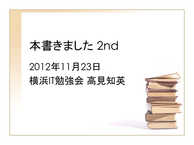 本書きました 2nd 2012年11月23日 横浜IT勉強会 高見知英