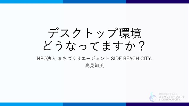 特定非営利活動法人 まちづくりエージェント SIDE BEACH CITY. 高見知英です! 2020/10/6 デスクトップ環境どうなってますか? 2 フリーランスプログラマ