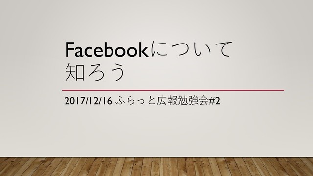 2017-12-16 ふらっと広報勉強会 Facebookについて知ろう で発表した資料です。