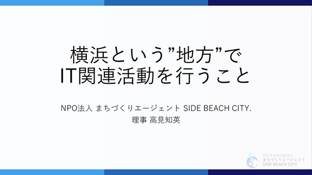 特定非営利活動法人 まちづくりエージェント SIDE BEACH CITY. 横浜という”地方”で IT関連活動を行うこと NPO法人 まちづくりエージェント SIDE