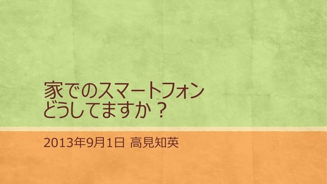 家でのスマートフォン どうしてますか? 2013年9月1日 高見知英