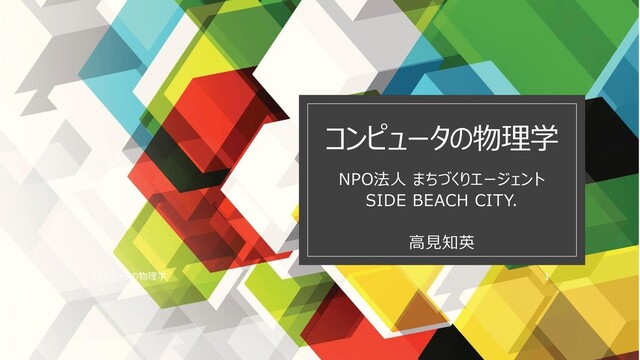 コンピュータの物理学 NPO法人 まちづくりエージェント SIDE BEACH CITY. 高見知英 2021/2/15 コンピュータの物理学 1