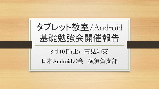 タブレット教室/Android 基礎勉強会開催報告 8月10日(土) 高見知英 日本Androidの会 横須賀支部