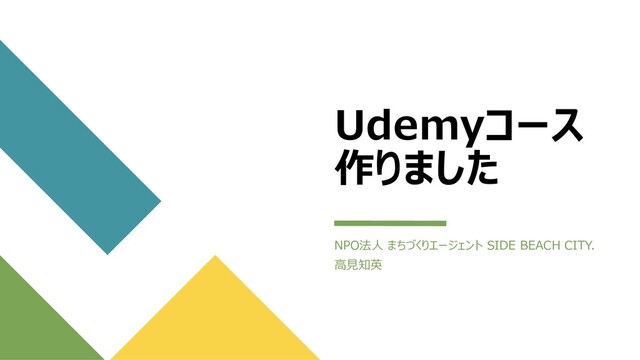 Udemyコース 作りました NPO法人 まちづくりエージェント SIDE BEACH CITY. 高見知英