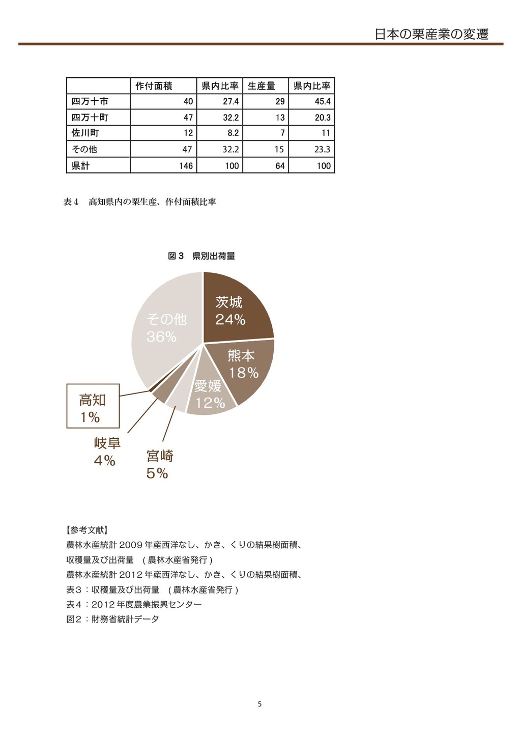 3. ೔ຊͷ܀࢈ۀͷมભ 表4 高知県内の栗生産、作付面積比率 ҵ৓  ۽ຊ ˋ Ѫඤ ˋ ٶ࡚ ˋ