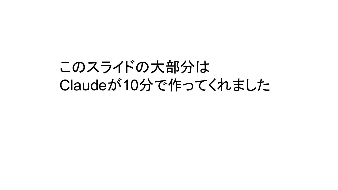 このスライドの大部分は Claudeが10分で作ってくれました