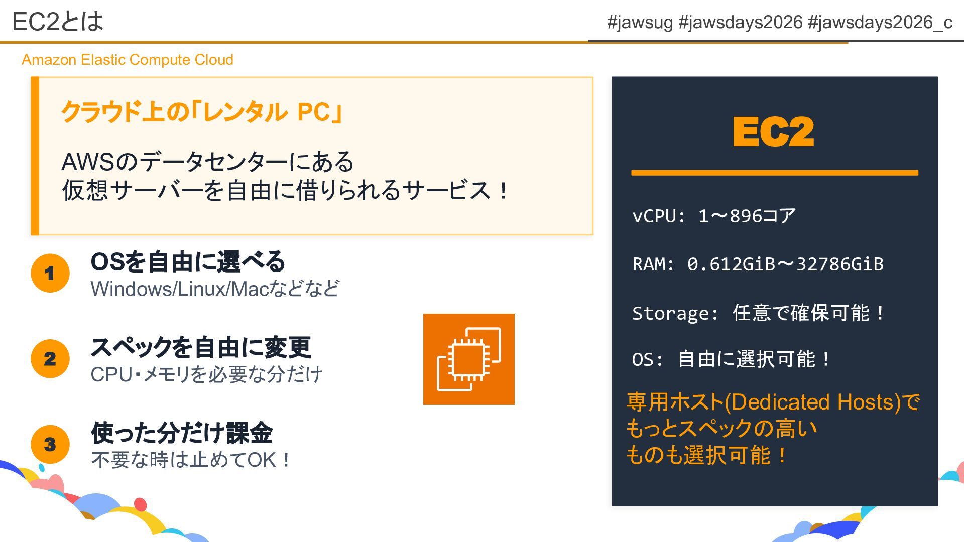 #jawsug #jawsdays2026 #jawsdays2026_c EC2とは Amazon Elastic Compute Cloud クラウド上の「レンタル PC」