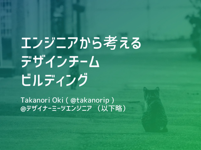 エンジニアから考える デザインチーム ビルディング Takanori Oki ( @takanorip ) @デザイナーミーツエンジニア (以下略)
