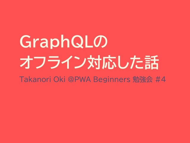 GraphQLの オフライン対応した話 Takanori Oki @PWA Beginners 勉強会 #4