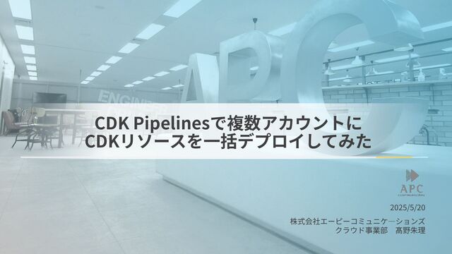 CDK Pipelinesで複数アカウントに CDKリソースを⼀括デプロイしてみた 2025/5/20 株式会社エーピーコミュニケ―ションズ クラウド事業部 髙野朱理