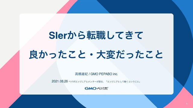 SIer͔Βస৬͖ͯͯ͠ ྑ͔ͬͨ͜ͱɾେมͩͬͨ͜ͱ ߴڮ༤ل / GMO PEPABO inc. 2021.08.26 ϖύϘΤϯδχΞͱϝϯλʔ͕ޠΔɺʮΤϯδχΞͱͯ͠ಇ͘ͱ͍͏͜ͱʯ 1