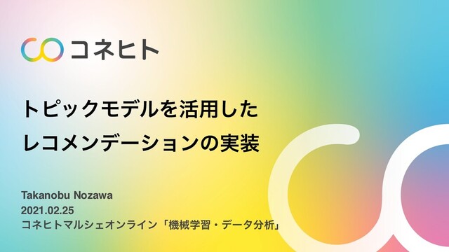 2021/02/25に行われたコネヒトマルシェで発表したトピックモデルを活用したレコメンデーションについての資料です。