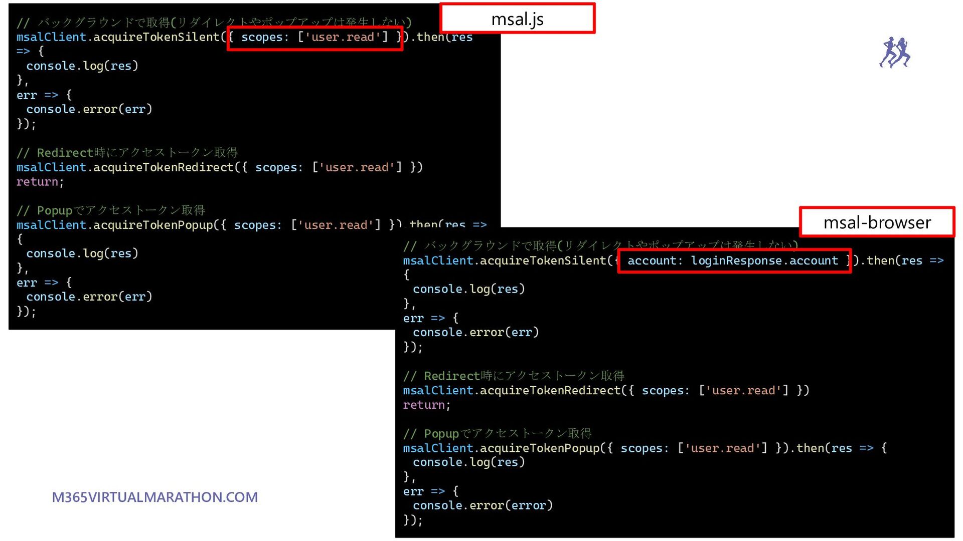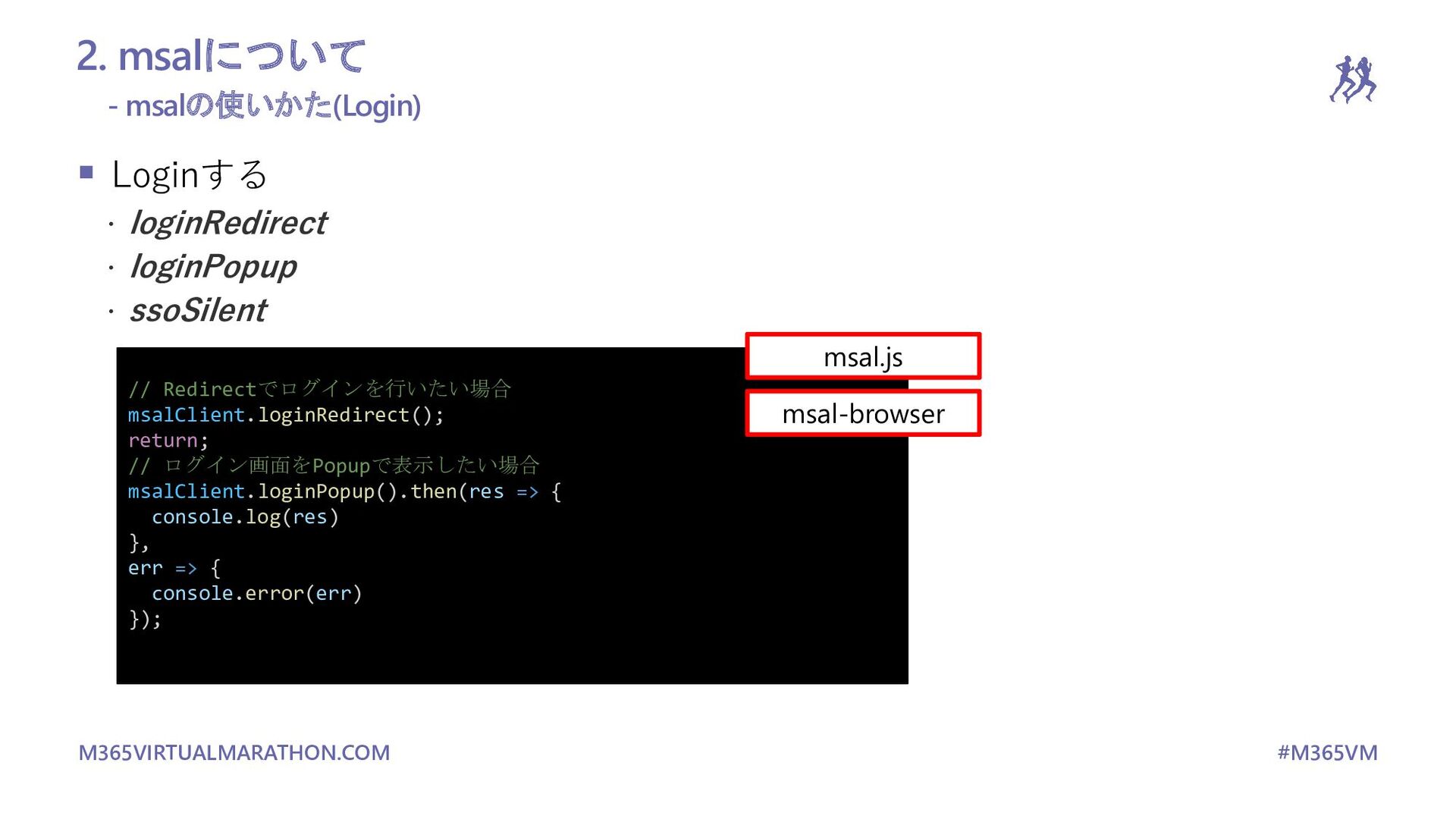 2.18.0 Emit event when user logs in or out from a different tab or window #3981 別タブ、ウィンドウで発生したログインやログアウトのイベントを補足できるように https://github.com/AzureAD/microsoft-authentication-library-for-js/blob/dev/lib/msal-browser/docs/events.md#syncing-logged-in- state-across-tabs-and-windows localStorageで且つSSOログインしている時のみしか機能しないのが残念… Remove requirement of user hint on ssoSilent API #4123 もともとssoSilentはsidかaccountかhintを指定する必要があったがそれがなしでもできるように。 https://github.com/AzureAD/microsoft-authentication-library-for-js/blob/dev/lib/msal-browser/docs/login-user.md 複数のアカウントセッションがない場合にしか使えないという当然と言えば当然な条件はある