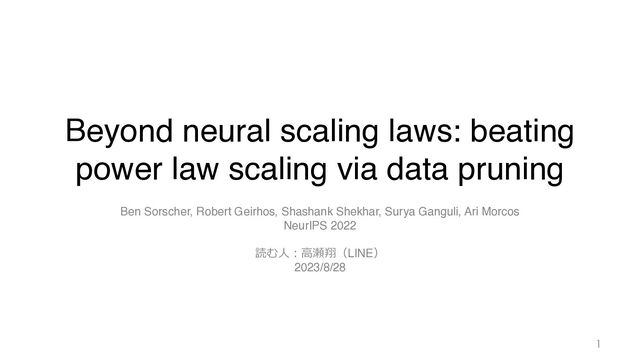CIFAR-10でチューニング 事前学習のデータ(ImageNet)を削る ImageNet を 7-8割程度まで削っても ・性能はあまり変化しない ・データの選択法によっては性能が上がる en larger datasets, scaling could improve further (e.g., dashed lines in A). E pruning (f = 1) are labeled with their best-fit power law scaling ⇠ ↵ ⌫. (N an asymptotic constant error E(P ! 1) = 1.1% is subtracted from each of he power law scaling more clearly.) B Frac. of ImageNet used for pretraining ResNet50 netuned on CIFAR-10 Test accuracy (%) 0.75 1.0 0.5 0.25 0 Figure 4: Data pruning improves trans learning. A: CIFAR-10 performance a ViT pre-trained on all of ImageNet2 and fine-tuned on different pruned subs of CIFAR-10 under the EL2N metric. CIFAR-10 performance of ResNet50s trained on different pruned subsets of I geNet1K and fine-tuned on all of CIFA 10.