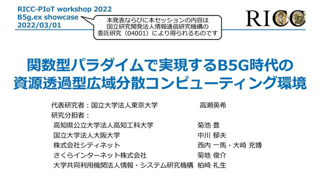 - 関数型パラダイムで実現する B5G 時代の資源透過型広域分散コンピューティング環境
