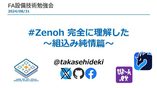 Peer Peer Peer Peer Peer Peer client client Router Router Router client client client client client client Router Router • Zero Overhead Pub/Sub, Store/Query and Compute. −Zero network overhead protocol −ネットワーク内ではDDSライク, ネットワーク間ではMQTTライクな通信ミドルウェア • 4つのポイント ① とにかくかるい! ② なんでもつかえる! ③ いろいろつながる! ④ よしなにしゃべれる! 6 https://zenoh.io/blog/2023-03-21-zenoh-vs-mqtt-kafka-dds/ • Pub / Sub (Push) - basic pub/sub method • Pub / Sub (Pull) - Sub receives in its own timing • Pub / Store / Get - KVS based computation • Get / Reply - RPC-like communication node node node node node node node node Pub Sub(callback) Sub(Pull) Pub Pub Get Reply Pull TL;DR,,,