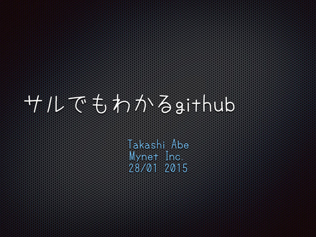 サルでもわかるgithub Takashi Abe Mynet Inc. 28/01 2015