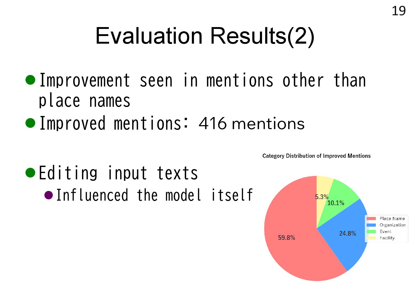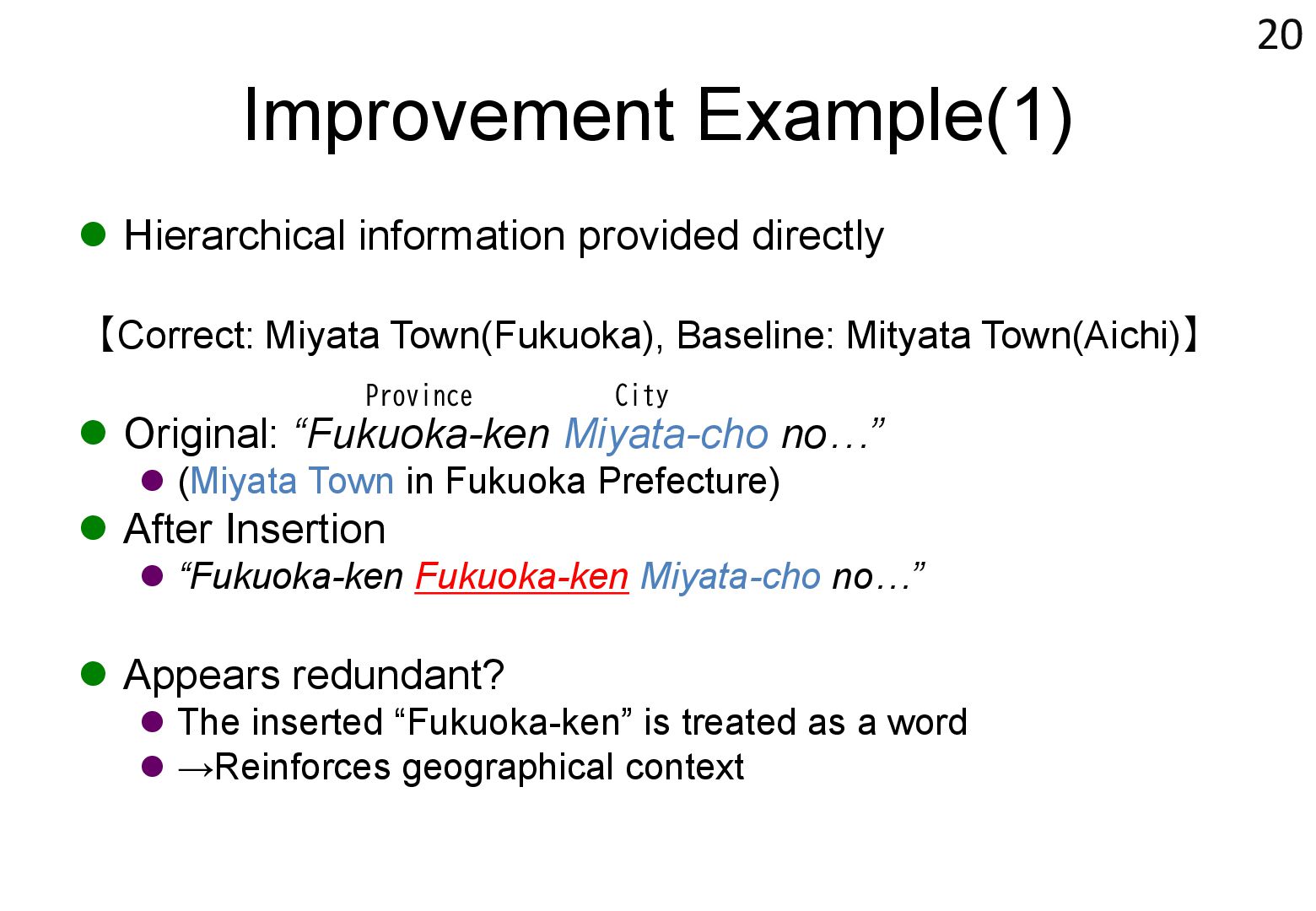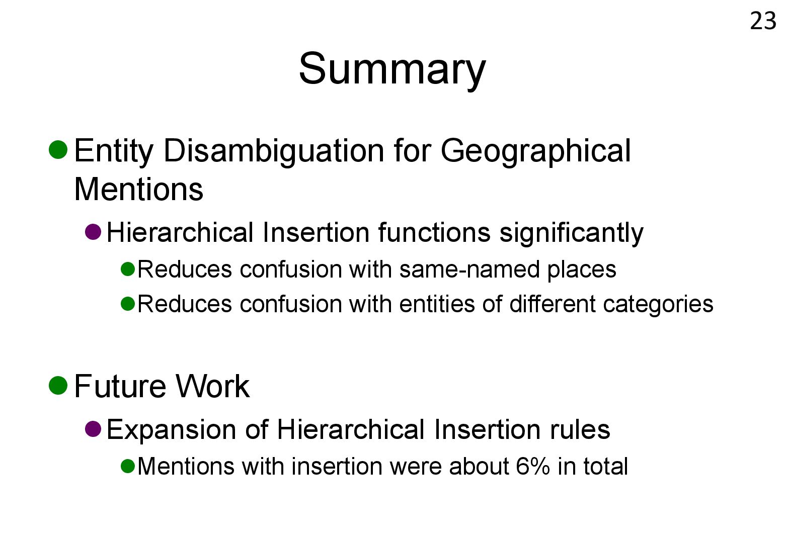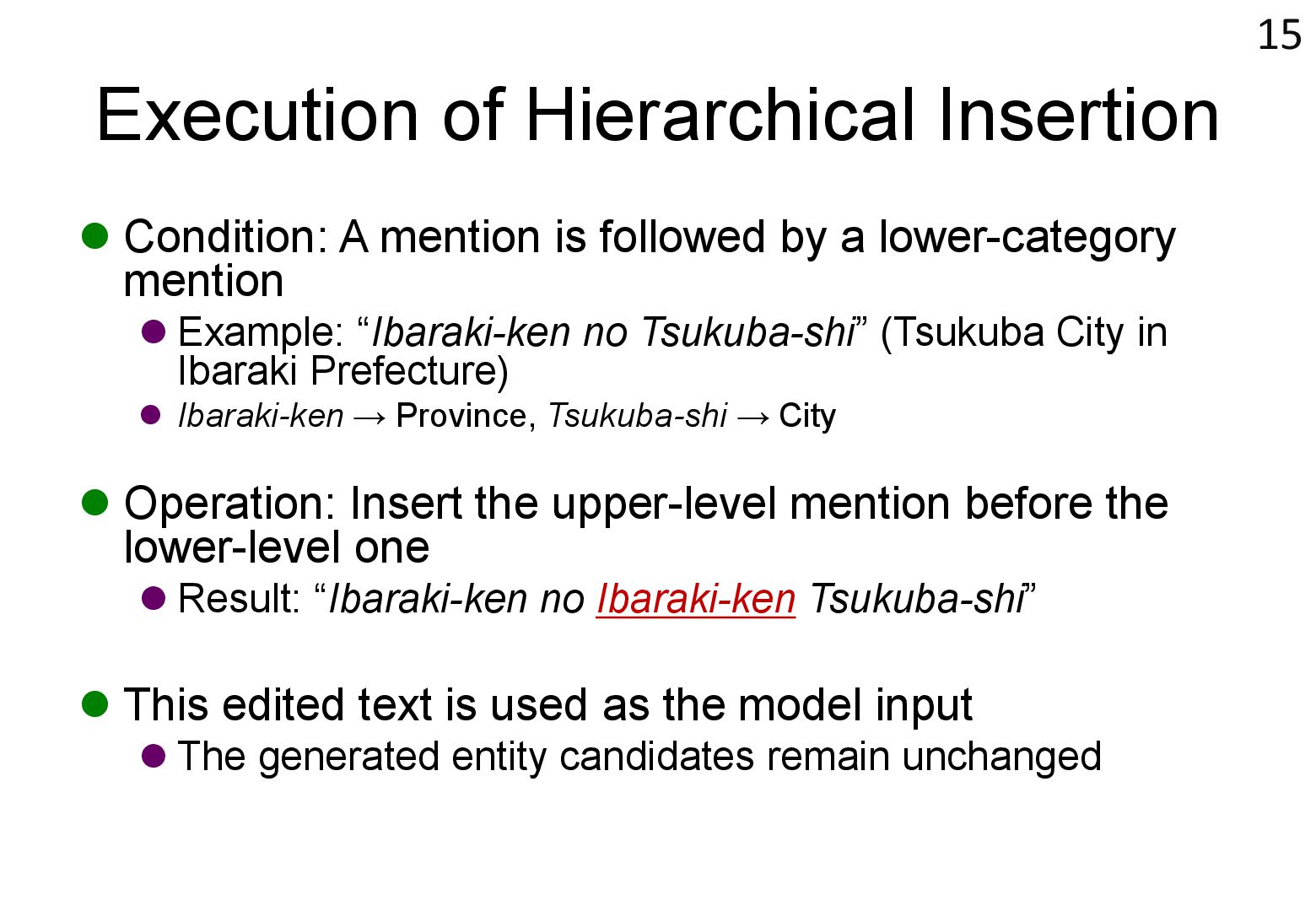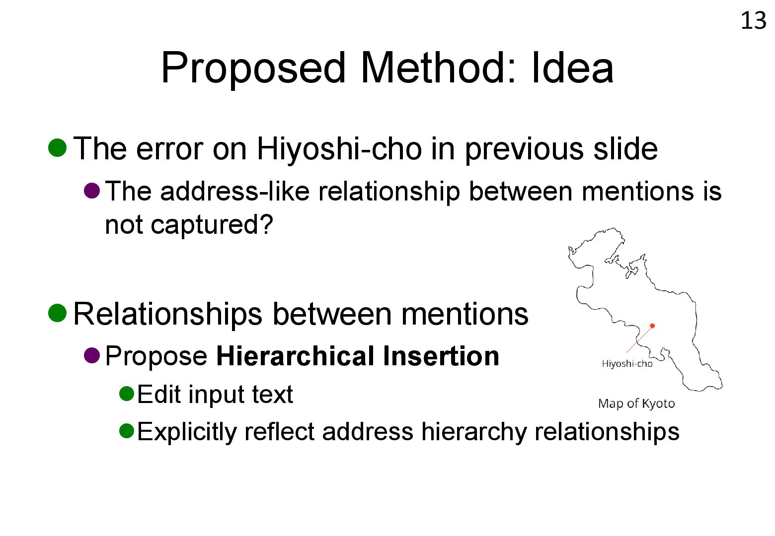 in text → real world locations) ⚫ Disambiguation using geographical distance ⚫ [Yamada+ 2022] ⚫ Deep learning-based entity disambiguation model ⚫ Model corresponding for general tasks 4 [Leidner 2004] Leidner, Jochen L. "Toponym resolution in text:“Which Sheffield is it?”." Proceedings of the the 27th annual international ACM SIGIR conference (SIGIR 2004). 2004. [Yamada 2022] Ikuya Yamada, Koki Washio, Hiroyuki Shindo, Yuji Matsumoto. Global Entity Disambiguation with BERT. Association for Computational Language. 2022