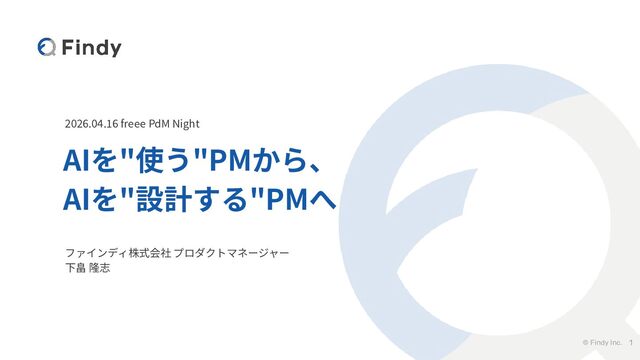 © Findy Inc. 2026.04.16 freee PdM Night AIを"使う"PMから、 AIを"設計する"PMへ 1