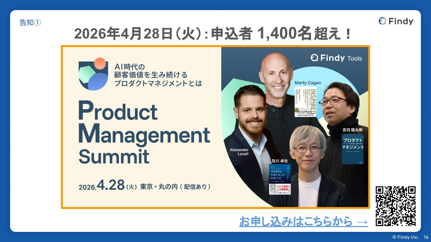 © Findy Inc. 告知① 16 2026年4月28日(火):申込者 1,400名超え! お申し込みはこちらから →