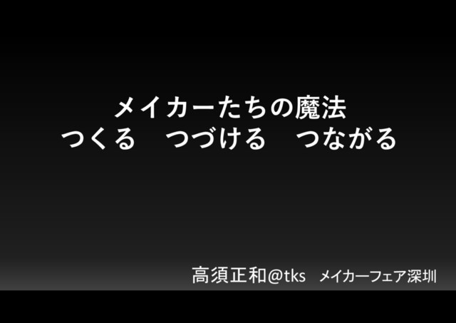 メイカーたちの魔法 つくる つづける つながる 高須正和@tks メイカーフェア深圳