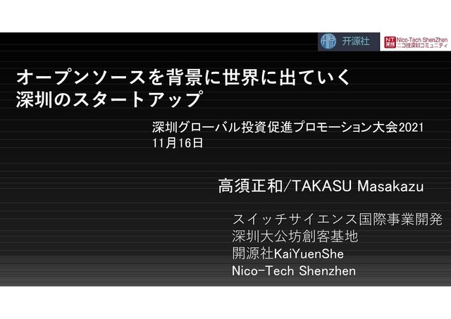 高須正和/TAKASU Masakazu スイッチサイエンス国際事業開発 深圳大公坊創客基地 開源社KaiYuenShe Nico-Tech Shenzhen
