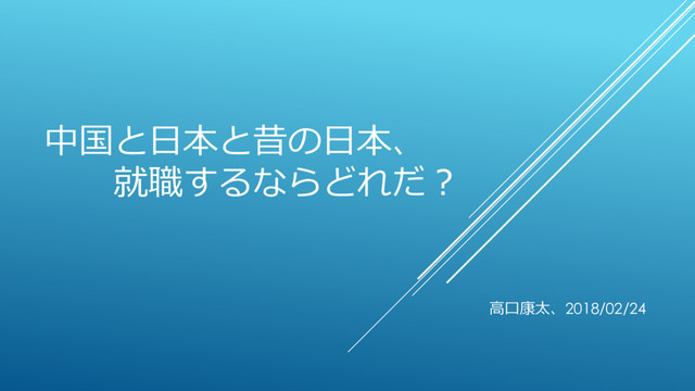 中国と日本と昔の日本、 就職するならどれだ? 高口康太、2018/02/24