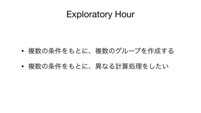 • ෳͷ݅ΛͱʹɺෳͷάϧʔϓΛ࡞͢Δ • ෳͷ݅ΛͱʹɺҟͳΔܭࢉॲཧΛ͍ͨ͠ Exploratory Hour