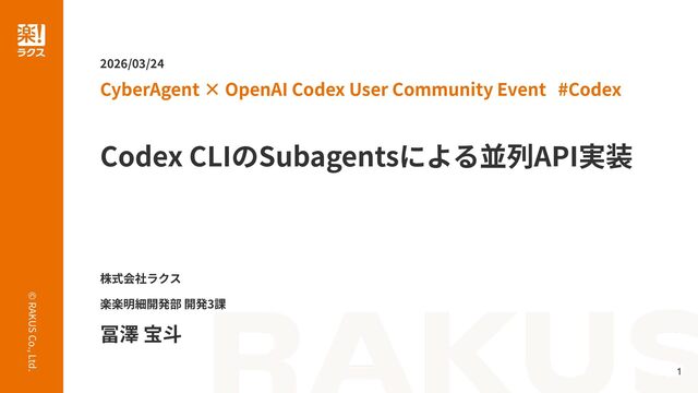 1. © RAKUS Co., Ltd. 1 Codex CLIのSubagentsによる並列API実装 CyberAgent × OpenAI