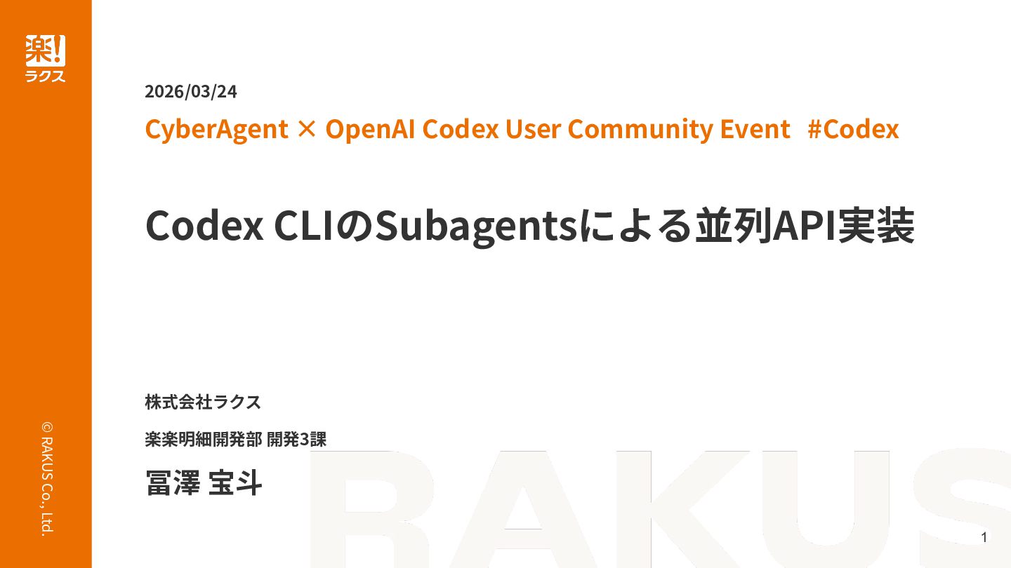 Codex User Community Event #Codex 2026/03/24 株式会社ラクス 楽楽明細開発部 開発3課 冨澤 宝⽃